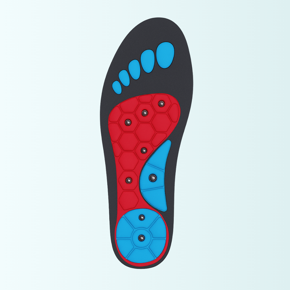 Gebaseerd op deze beproefde praktijk heeft Lucavel handgemaakte inlegzolen ontwikkeld met precies geplaatste magneten op belangrijke drukpunten.