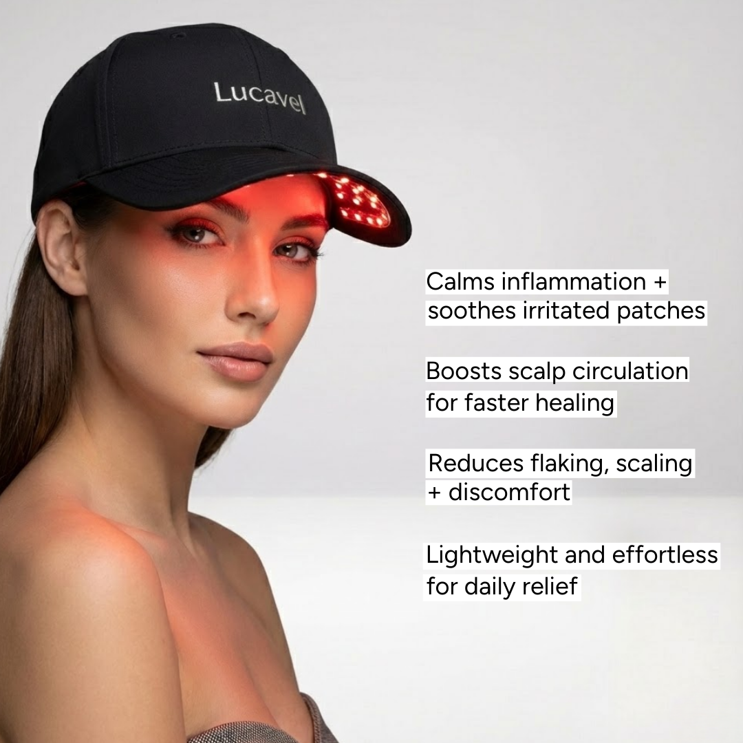 No — the Lucavel cap is not a cure for psoriasis. However, many users report that consistent red-light sessions help reduce common symptoms like redness, flaking, dryness, and irritation, making the scalp feel noticeably calmer over time and look better.